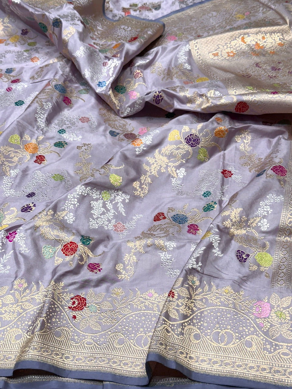 Pinkish-Lilac Handwoven Pure Banarasi Silk SareePinkish-Lilac Handwoven Pure Banarasi Silk Saree- Regular price