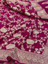 Made from pure Banarasi chiffon Georgette, this Rani Pink saree is a perfect combination of elegance and comfort. It's lightweight and soft texture makes it easy to carry and drapes beautifully on any body type. Elevate your style quotient with this timeless piece that will make you stand out.