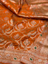 • Expertly crafted, this  Minakari Pure Silk Saree is made with the finest Katan silk and adorned with intricate Minakari detailing. The vibrant shades of color in the design enhance the saree's beauty, making it a must-have for any occasion. Elevate your style with this luxurious and timeless piece