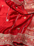 Brick Red Handwoven Pure Mashru Banarasi Satin Silk Saree – Kadwa Weave | Authentic Banaras Handloom