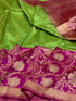 Parrot Green Handwoven Pure Banarasi Ektara Silk Saree – Kadwa Iktara Weave, Rani Pink Skirt Border Pure Mulberry Silk