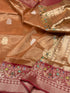 Golden Copper Handwoven Pure Banarasi Kora Tissue Saree