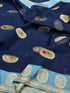 Navy Blue Handwoven Pure Banarasi Organza Silk Saree – Kadwa Weave in Kora Mulberry Silk