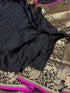 Black Handwoven Pure Banarasi Satin Silk Saree