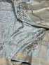 Ash Grey Handwoven Pure Banarasi Satin Tanchoi Silk Saree