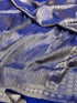 Navy Blue Handwoven Banarasi Satin Tanchoi Brocade Saree