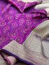 Purple Handwoven Pure Banarasi Satin Tanchoi Silk Saree