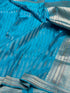 Sea Blue Handwoven Pure Banarasi Satin Tanchoi Silk Saree – Kadwa Weave | Authentic Banaras Handloom