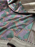 Handwoven using the traditional Kadwa technique, this saree features the iconic Tanchoi weave, renowned for its intricate all-over patterning created through a complex interlacing of silk threads. Each motif is individually woven, resulting in rich surface detailing, structural durability, and a fabric where design and weave exist in perfect harmony.