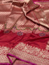 Expertly crafted from pure Banarasi silk, this beautiful red saree is a true masterpiece. With its intricate handwoven design, it exudes a contemporary charm that is sure to turn heads. Elevate your style and make a statement with this stunning piece.