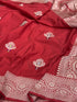 This handwoven Red saree is made of pure Banarasi silk, showcasing the intricate and traditional art of Indian weaving. Its bold blue color and smooth silk texture make it perfect for elegant occasions. Made with care and expertise, this saree is a timeless addition to your wardrobe.