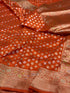 This handwoven Orange saree is made of pure Banarasi silk, showcasing the intricate and traditional art of Indian weaving. Its bold blue color and smooth silk texture make it perfect for elegant occasions. Made with care and expertise, this saree is a timeless addition to your wardrobe.