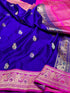 Royal Blue Handwoven Pure Banarasi Satin Silk Saree – Authentic Kadwa Weave