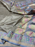 Ash Grey Handwoven Pure Banarasi Silk Saree in Kadwa Weave | Authentic Katan Mulberry Silk