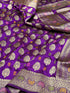 Purple Handwoven Pure Banarasi Silk Saree – Kadwa Weave in 100% Katan Mulberry Silk