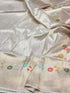 Ivory Handwoven Pure Banarasi Silk Saree – Kadwa Weave, Pure Katan-Mulberry Silk