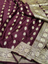 Wine Handwoven Vintage Pure Banarasi Satin Silk Saree