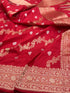 This exquisite Handwoven Pure Banarasi Silk Saree features intricate gold and silver motifs, showcasing skilled craftsmanship. Made from pure Banarasi silk, this saree is not only a stunning masterpiece but also a comfortable and luxurious choice for any occasion. Elevate your wardrobe with this one-of-a-kind saree.