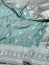 Woven using the Kadwa technique, it highlights intricate motifs and delicate detailing that exemplify the skill of master artisans. The soft powder blue hue adds a sophisticated and refreshing charm, making it perfect for weddings, festive occasions, daytime functions, and elegant celebrations.