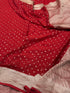 Make a statement with this Red Pure Banarasi Chiffon Georgette Saree. Crafted from 100% pure chiffon georgette silk with intricate cutwork detailing, it offers a soft, lightweight texture that drapes effortlessly on any body type. The vibrant red hue and elegant design make it perfect for weddings, festive occasions, or evening gatherings. Each saree is handwoven, giving it a unique character with subtle variations in color and weave. Includes an unstitched matching blouse for a tailored fit.