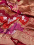 This Red Rangkaat Handwoven Banarasi Saree features elegant meenakari cross design work, offering a rich, traditional look that elevates your style for any festive or special occasion.