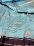 Aqua Blue Handwoven Pure Banarasi Satin Border Silk Saree